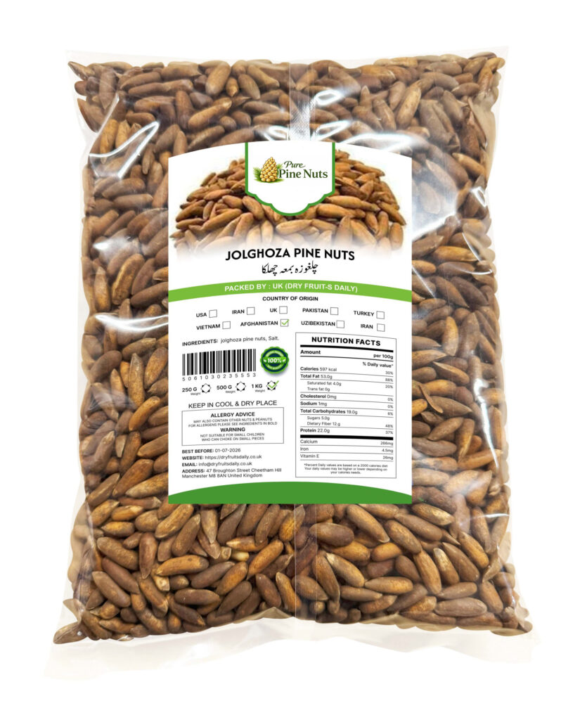 Enjoy the rich taste of premium handpicked pine nuts. One of the most luxurious and nutritious dry fruits packed with healthy fats, protein, and natural energy.